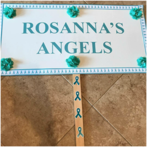 The winner of the T.E.A.L.® Walk Team Contest is Rosanna’s Angels! Rosanna’s beautiful sign embraces the beauty and strength of team leader, Rosanna Logozzo, who is also a brave survivor of ovarian cancer. Rosanna’s Angels has raised an astounding $905 so far for ovarian cancer research. Congratulations Rosanna’s Angels! To learn more about Rosanna’s ovarian cancer journey, read her featured story here.